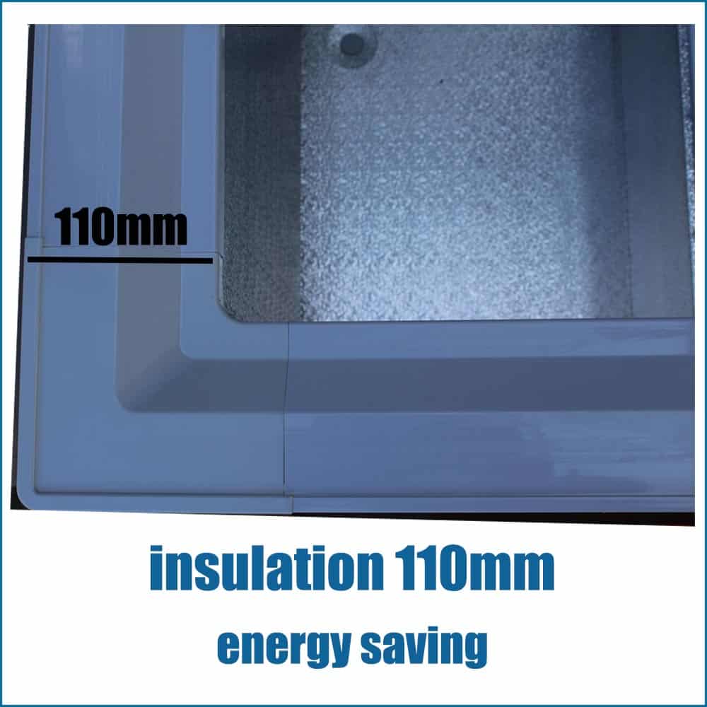 3.Excellent Insulation: It has an 110mm CFC-free insulating wall. Compared with similar ordinary freezers, it can save 60% of the energy consumption of solar panels and batteries.